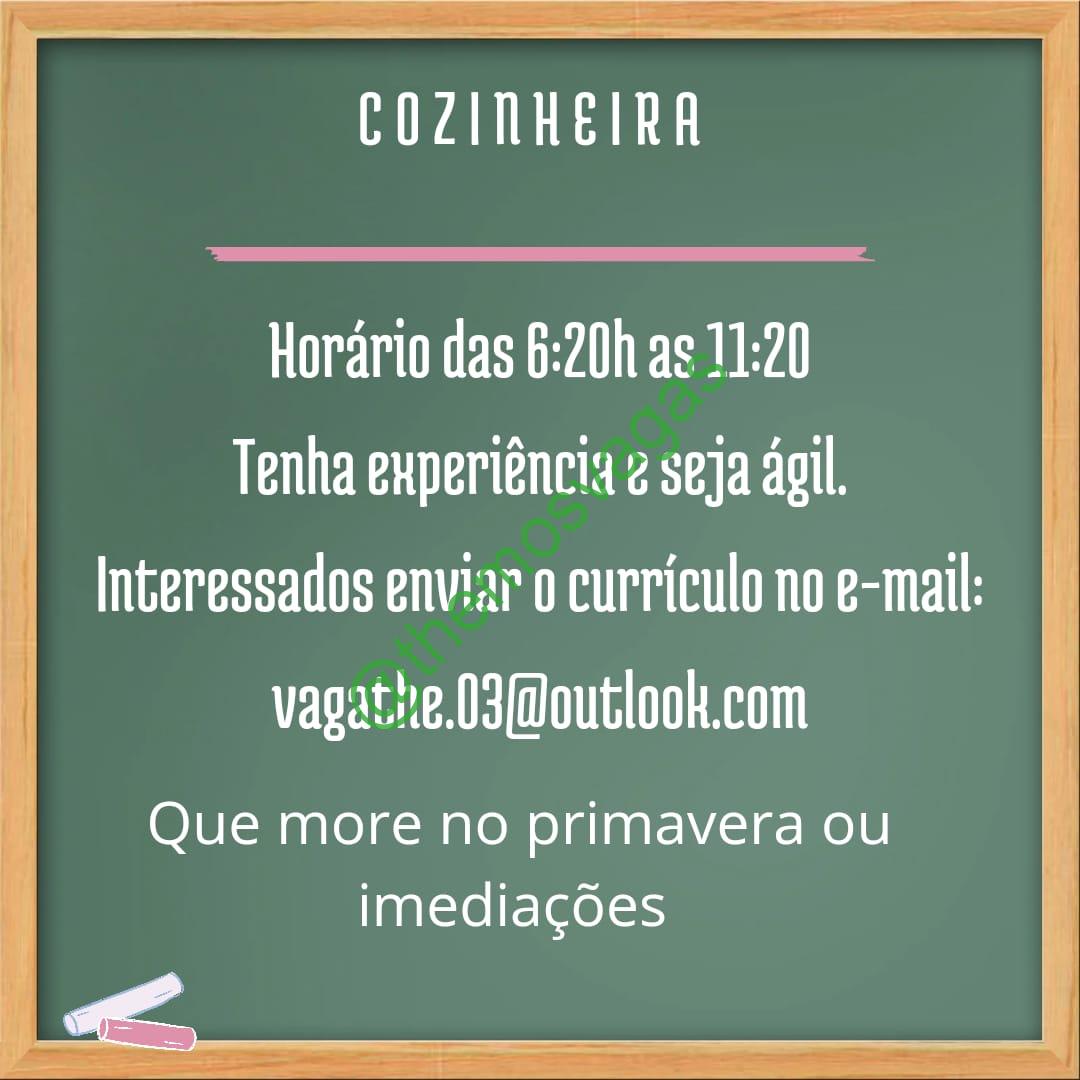 – Interessados(as) e que atendam ao perfil solicitado acima, devem enviar o currículo para o e-mail vagathe.03@outlook.com contendo no título/assunto “Cozinheira – THE