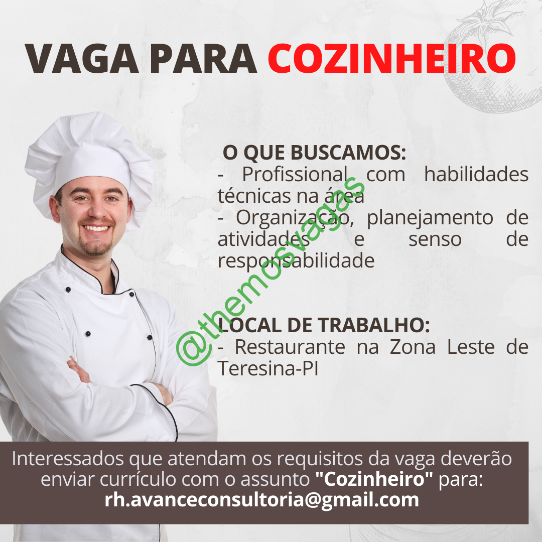 Cozinheiro | Teresina – PI | 07 vaga(s)