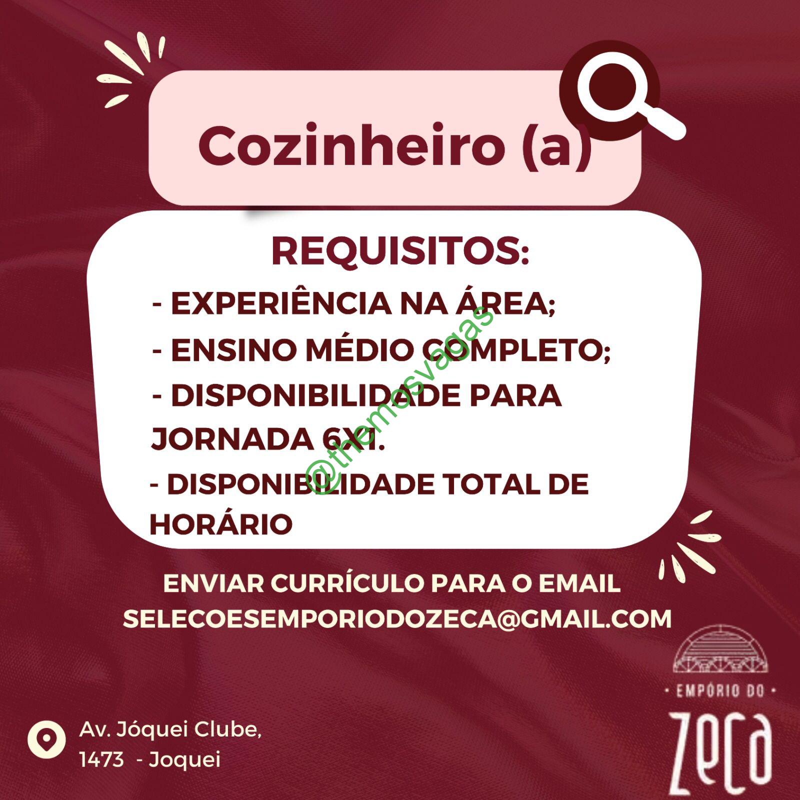 – Interessados(as) e que atendam ao perfil solicitado acima, devem enviar o currículo para o e-mail selecoesemporiodozeca@gmail.com contendo no título/assunto “Cozinheiro(a) – THE“.