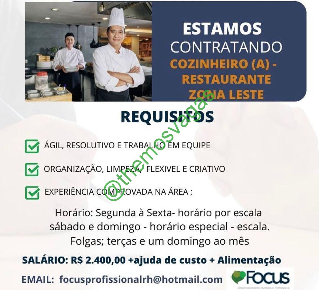 – Interessados(as) e que atendam ao perfil solicitado acima, devem enviar o currículo para o e-mail focusprofissionalrh@hotmail.com contendo no título/assunto “Cozinheiro(a) – THE“.