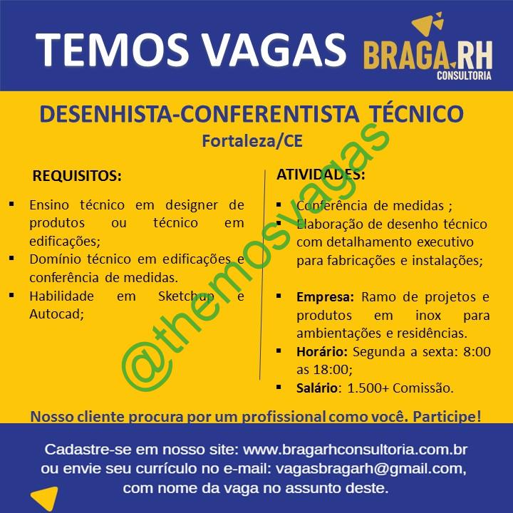 Desenhista Conferentista Técnico| Fortaleza – CE | 01 vaga(s)