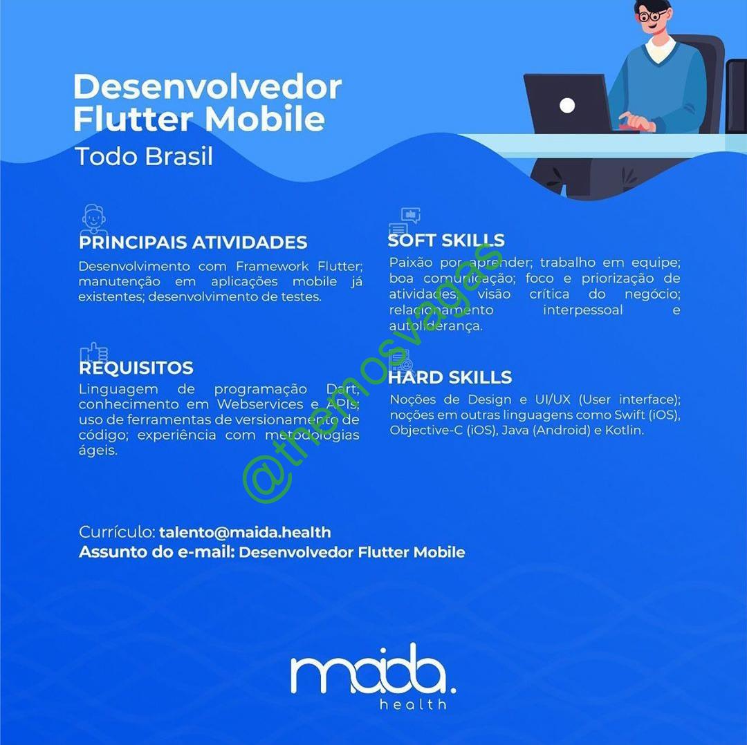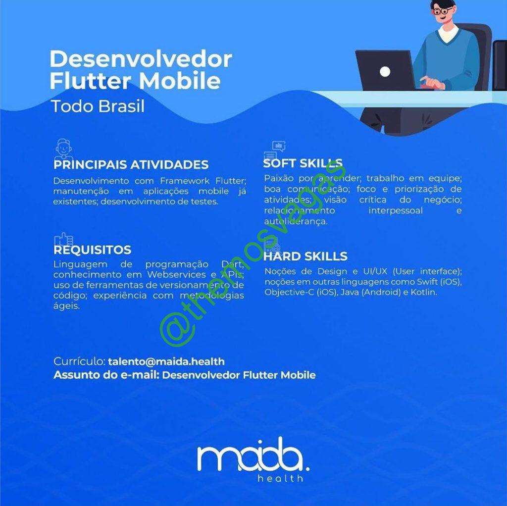 – Interessados(as) e que atendam ao perfil solicitado acima, devem enviar o currículo para o e-mail talento@maida.health contendo no título/assunto “Desenvolvedor Flutter Mobile