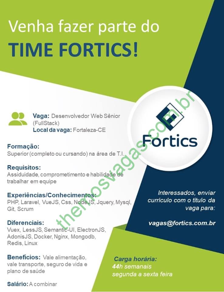 – Interessados(as) e que atendam ao perfil solicitado acima, devem enviar o currículo para o e-mail  vagas@fortics.com.br colocando no título “Desenvolvedor Web”.