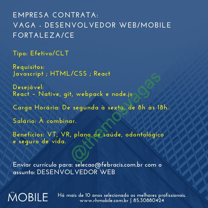 Desenvolvedor(a) Web / 01 vaga(s) / Fortaleza – CE