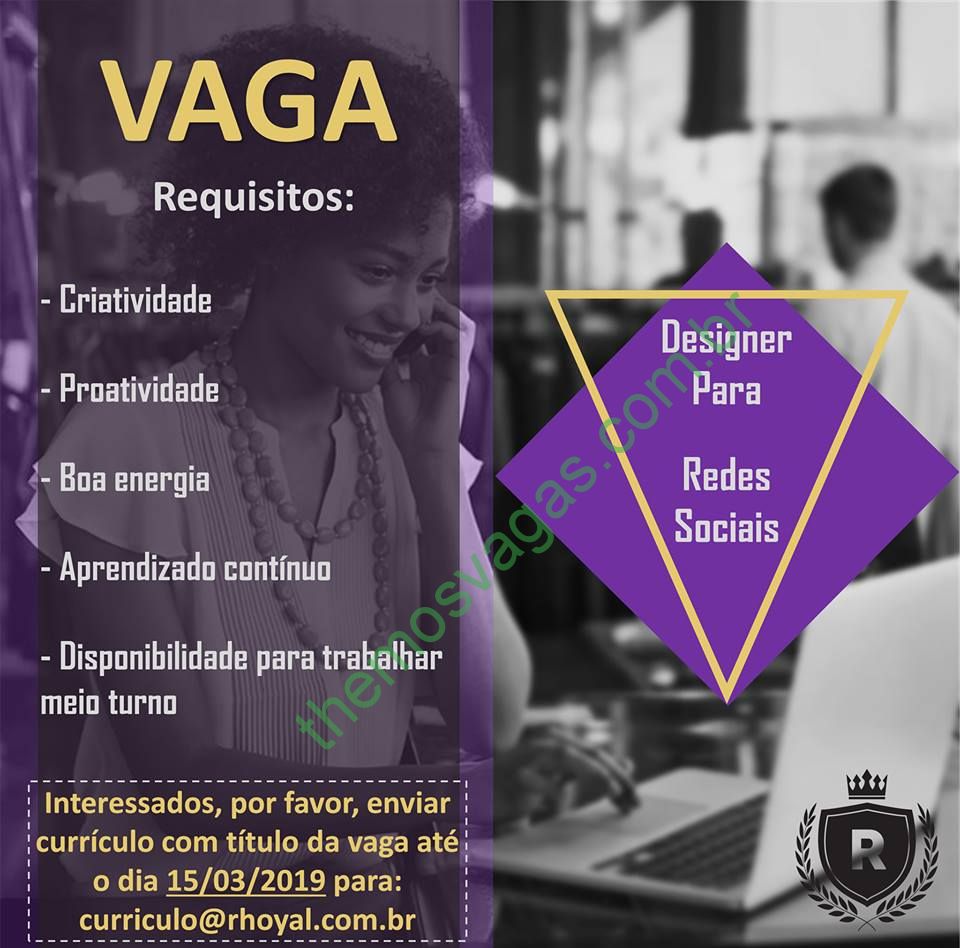 Interessados(as) e que atendam ao perfil solicitado acima devem enviar o perfil profissional, contendo no título/assunto do e-mail “Designer para Redes Sociais”, para curriculo@rhoyal.com.br .