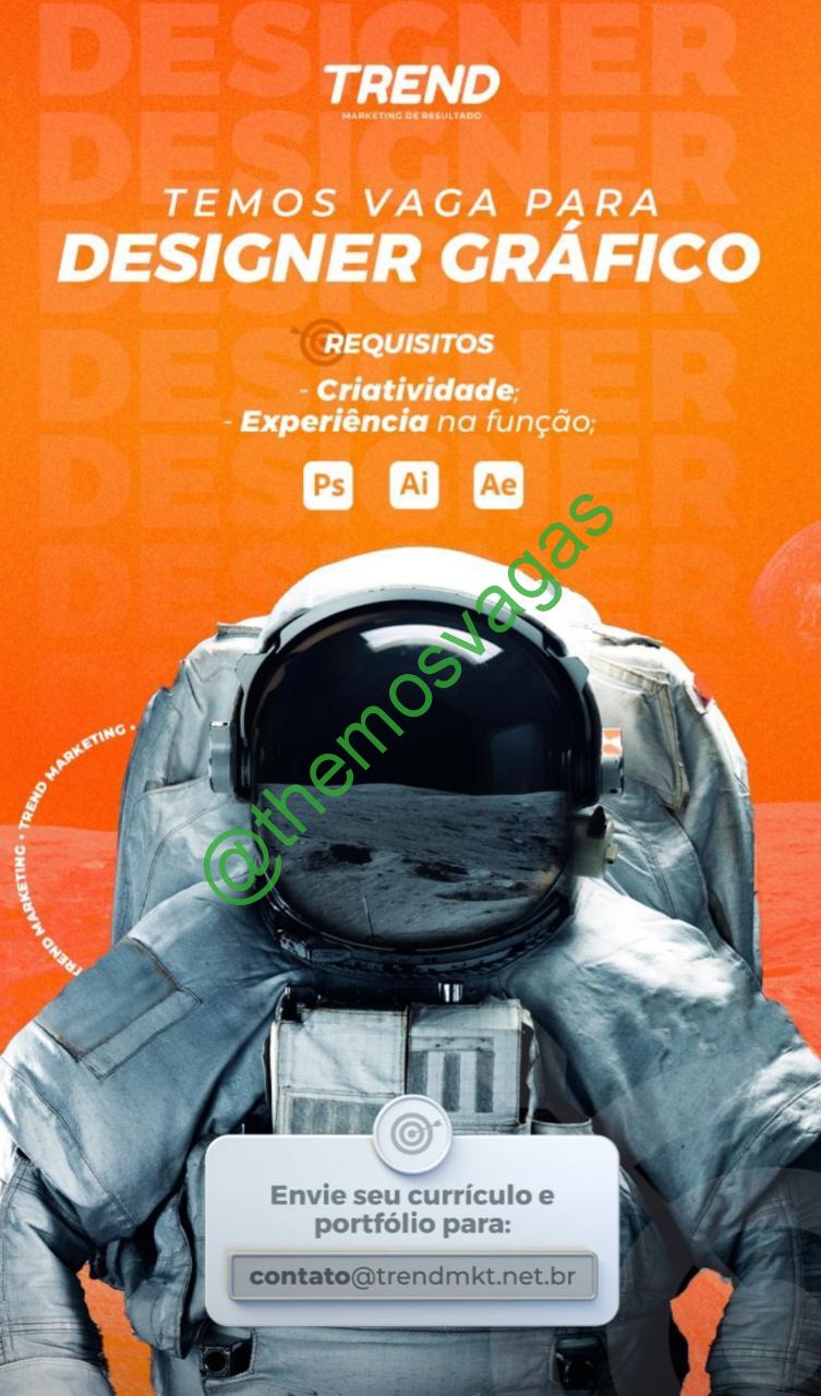 – Interessados(as) e que atendam ao perfil solicitado acima, devem enviar o currículo  para o e-mail contato@trendmkt.net.br contendo no título/assunto “Designer Gráfico THE