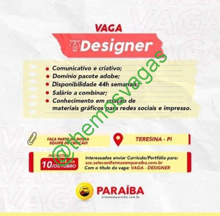 – Interessados(as) e que atendam ao perfil solicitado acima, devem enviar o currículo até 10/10/2022 para o e-mail sce.selecao@armazemparaiba.com.br contendo no título/assunto “Vaga – Designer