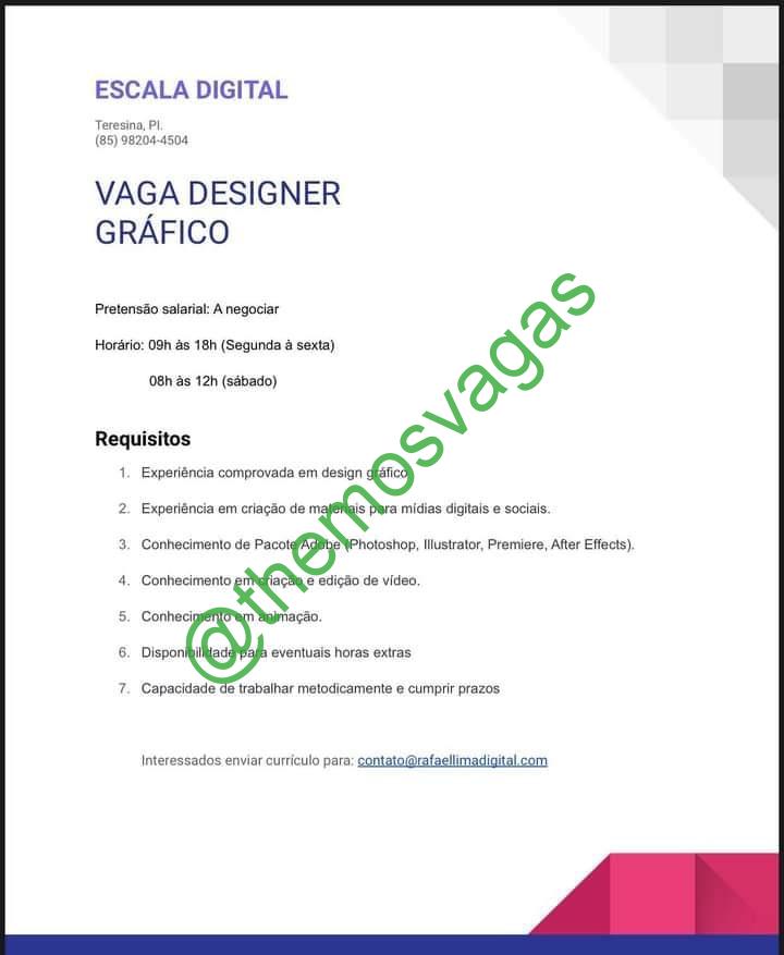 Designer Gráfico | Teresina – PI | 01 vaga(s)