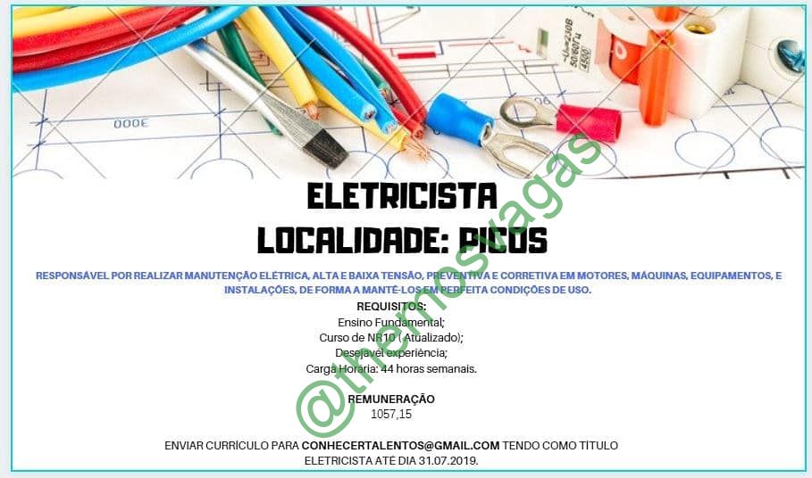 – Interessados(as) e que atendam aos requisitos devem enviar o perfil profissional até o dia 31/07/2019, colocando no título do e-mail “Eletricista”, para:  conhecertalentos@gmail.com