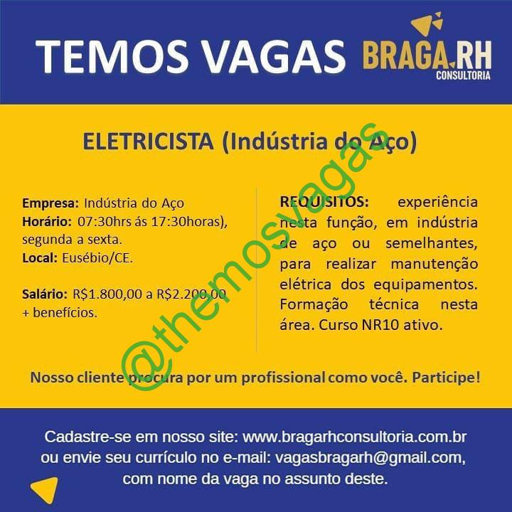 –  Interessados(as) e que atendam ao perfil solicitado acima, devem enviar o currículo para o e-mail vagasbragarh@gmail.com, contendo no titulo/assunto “Eletricista – FOR