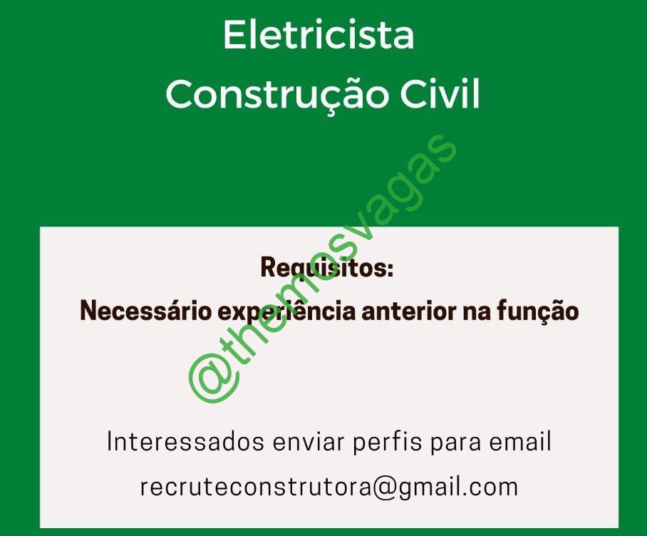 – Interessados(as) e que atendam ao perfil solicitado acima, devem enviar o currículo para o e-mail recruteconstrutora@gmail.com contendo no título/assunto “Eletricista THE