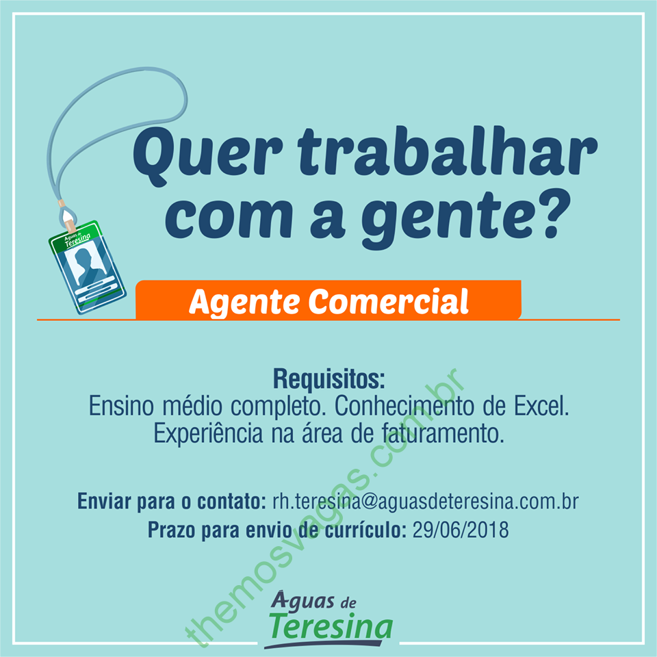 Emprego para Agente Comercial no Águas de Teresina