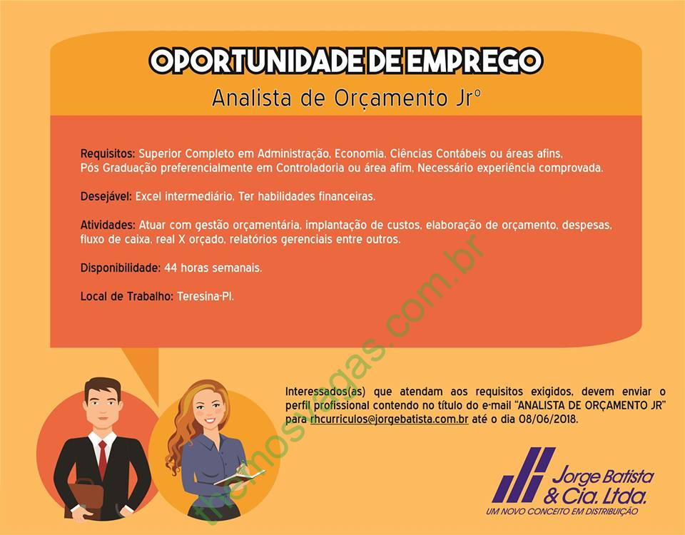 Emprego para Analista de Orçamento Jr em Teresina – PI