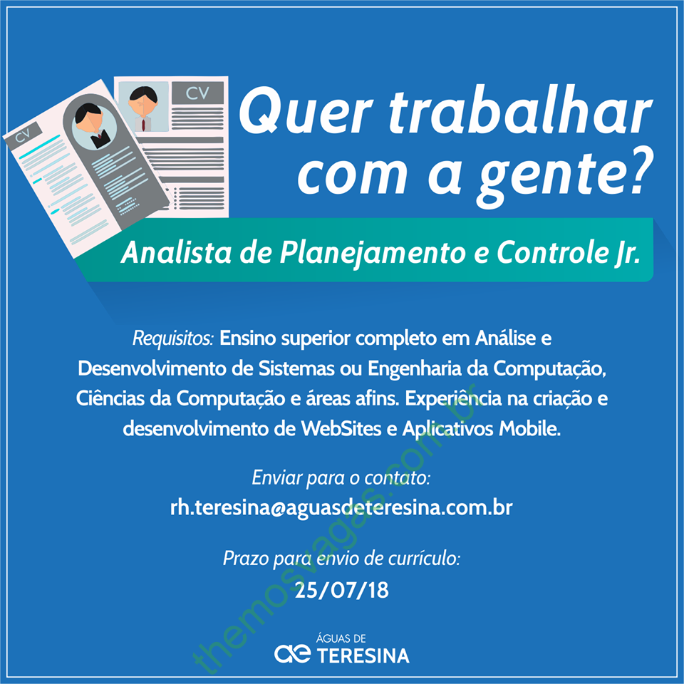 Emprego para Analista de Planejamento e Controle Jr. no Águas de Teresina