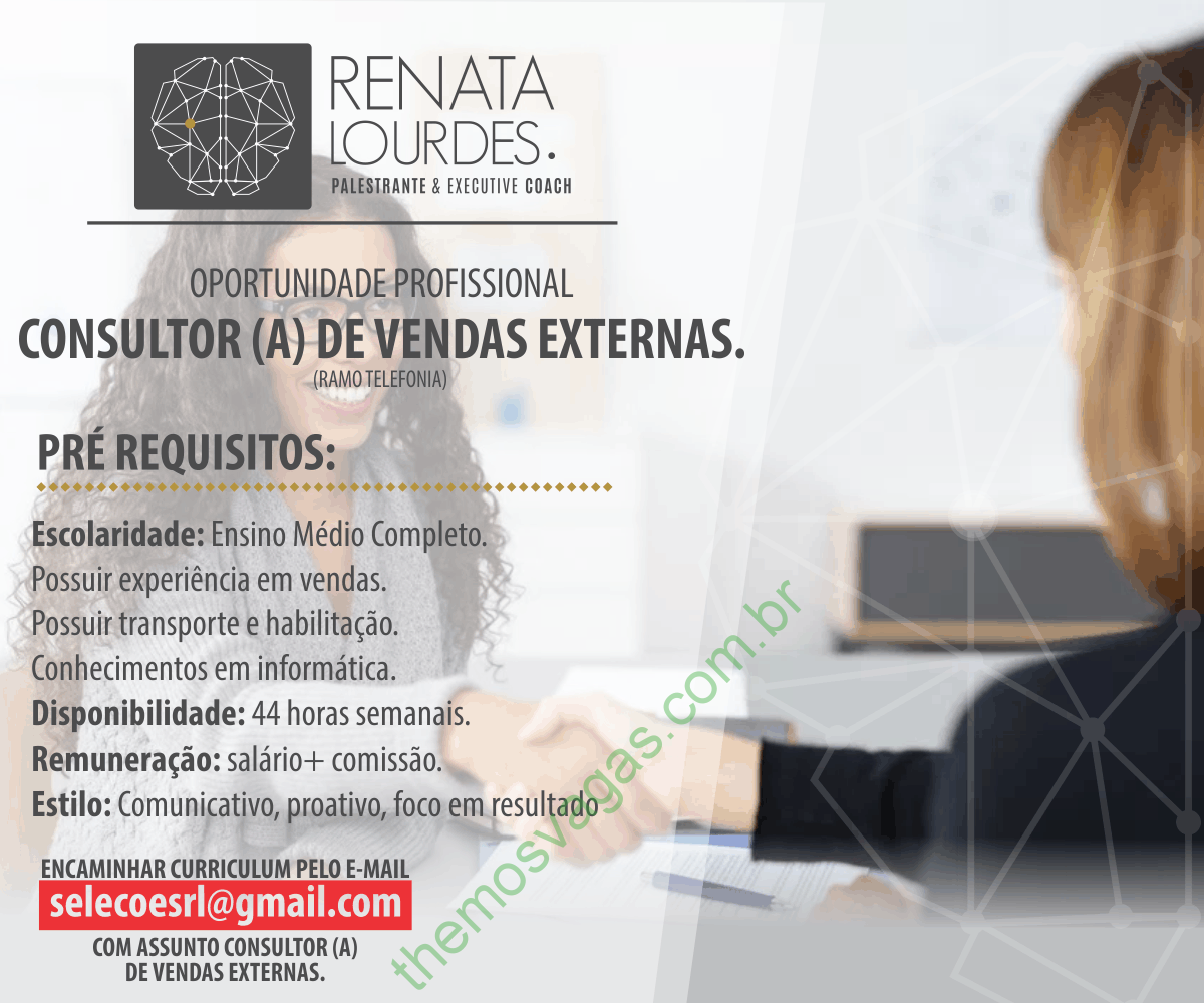 Interessados(a) e que atendam aos requisitos exigidos na imagem acima devem enviar o currículo com o título do e-mail “Consultor de Vendas Externas para selecoesrl@gmail.com.