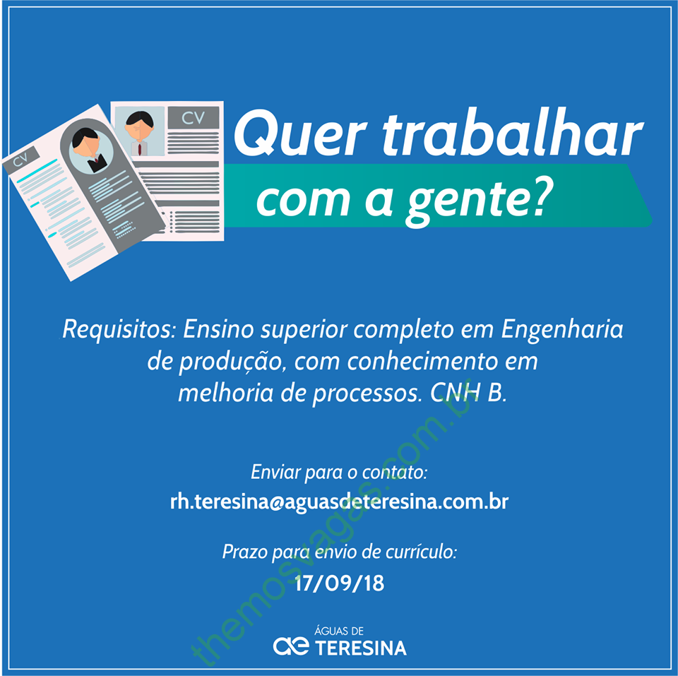 Emprego para Engenheiro de Produção no Águas de Teresina – PI