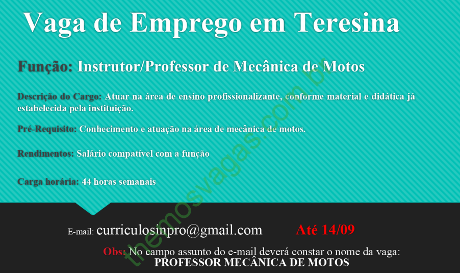 Emprego para Professor de Mecânica de Motos em Teresina – PI