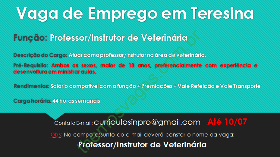Emprego para Professor de Veterinária em Teresina – PI