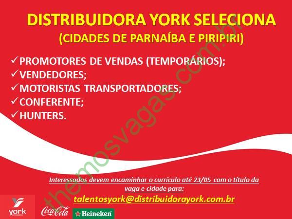 Interessados e que atendam aos requisitos exigidos devem enviar o perfil profissional até 23/05/2018 contendo no título do e-mail “Nome da cidade + Nome da Função pretendida” para talentosyork@distribuidorayork.com.br .