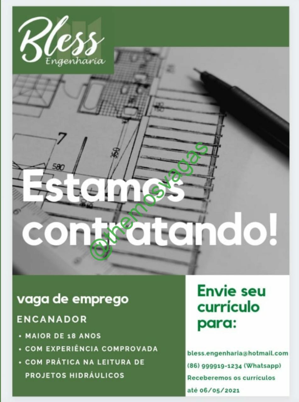 – Interessados(as) e que atendam ao perfil solicitado acima, devem enviar o currículo até 06/05/2021 para o e-mail bless.engenharia@hotmail.com contendo no título/assunto “Encanador PHB
