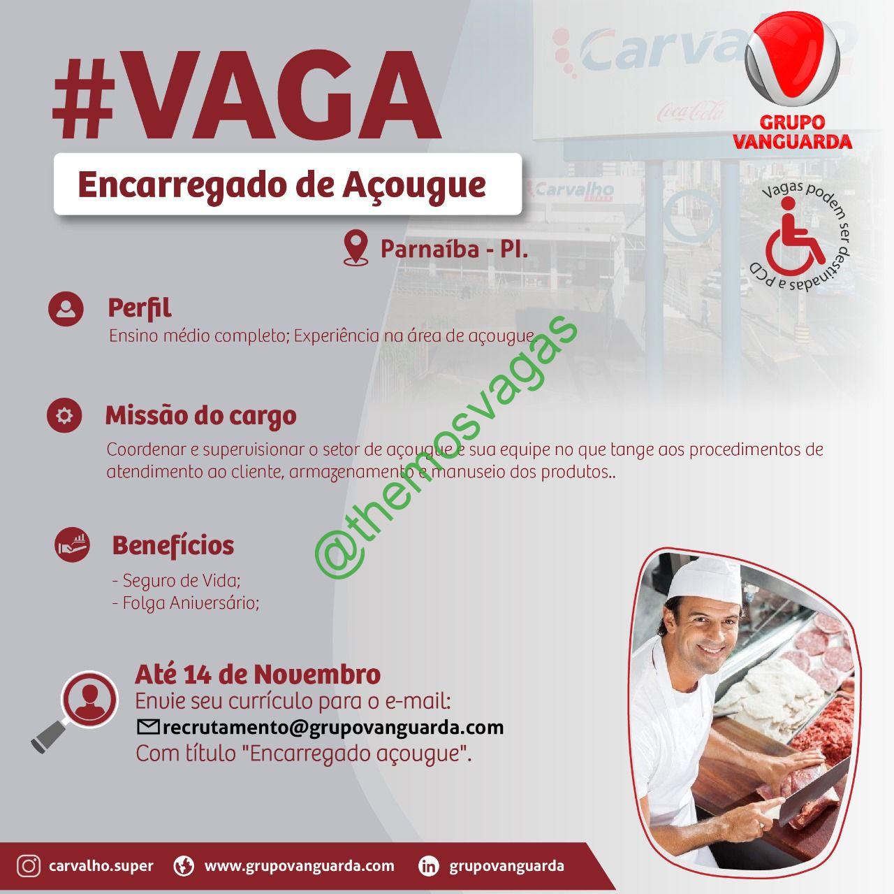 – Interessados(as) e que atendam ao perfil solicitado acima, devem enviar o currículo até 14/11/2021 para o e-mail recrutamento@grupovanguarda.com, contendo no título/assunto “Encarregado de Açougue“.