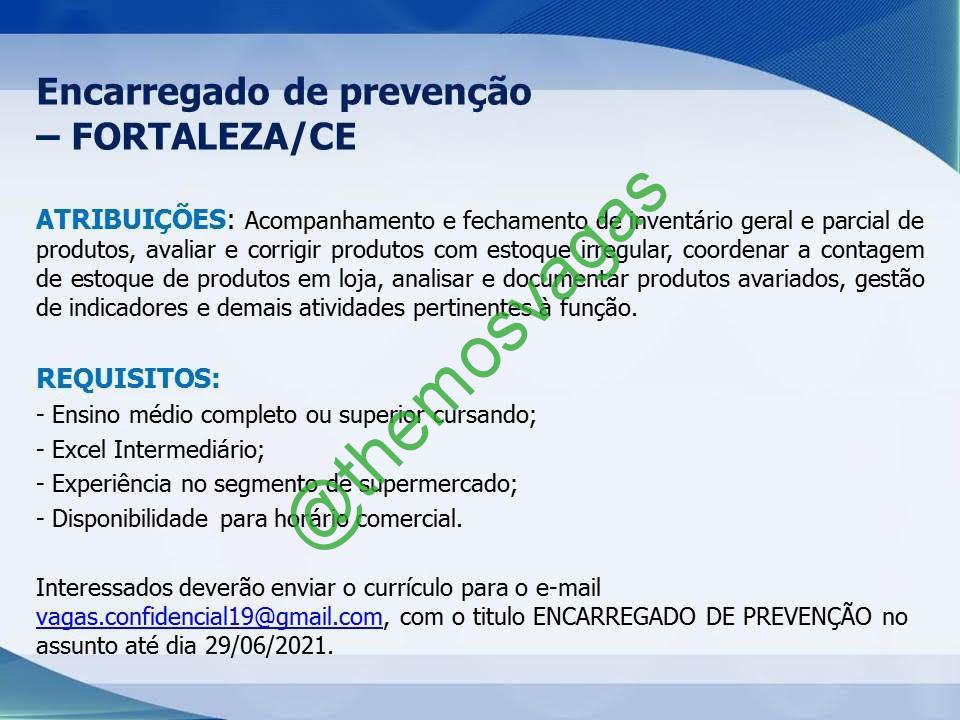 Encarregado de Prevenção | Fortaleza – CE | 01 vaga(s)