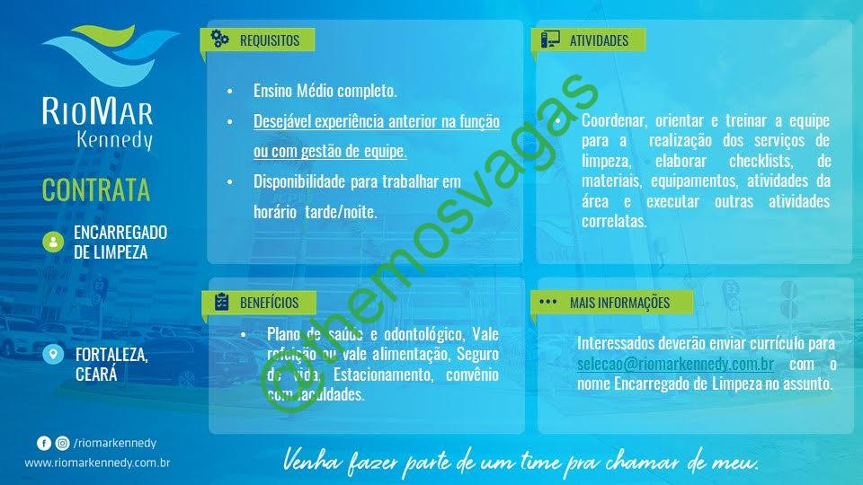 – Interessados(as) e que atendam ao perfil solicitado acima, devem enviar o currículo para o e-mail selecao@riomarkennedy.com.br , colocando no título “Encarregado(a) de Limpeza”.