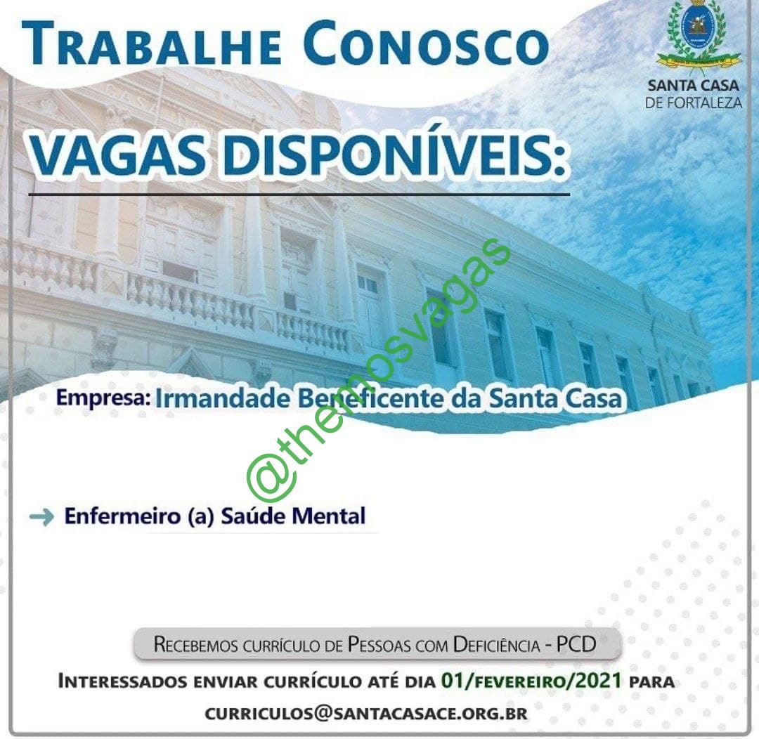 – Interessados(as) e que atendam ao perfil solicitado acima, devem enviar o currículo até 01/02 para o e-mail curriculos@santacasace.org.br, contendo no título/assunto “Enfermeiro – FOR