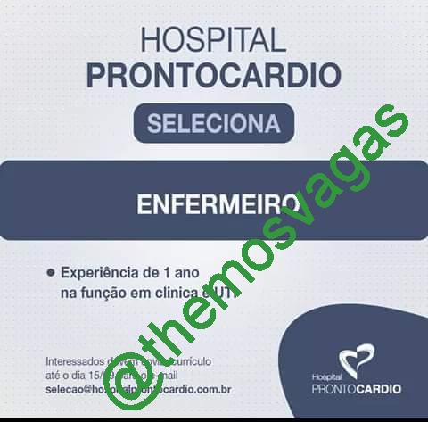 – Interessados(as) e que atendam ao perfil solicitado acima, devem enviar o currículo para o e-mail selecao@hospitalprontocardio.com.br , colocando no título “Enfermeiro(a)”.
