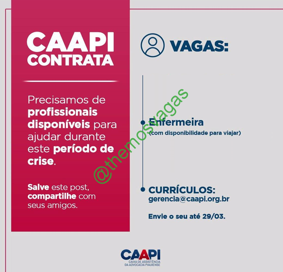 – Interessados(as) e que atendam ao perfil solicitado acima, devem enviar o currículo até o dia 29/03/2020 para o e-mail gerencia@caapi.org.br , colocando no título/assunto: “Enfermeiro(a) THE”.