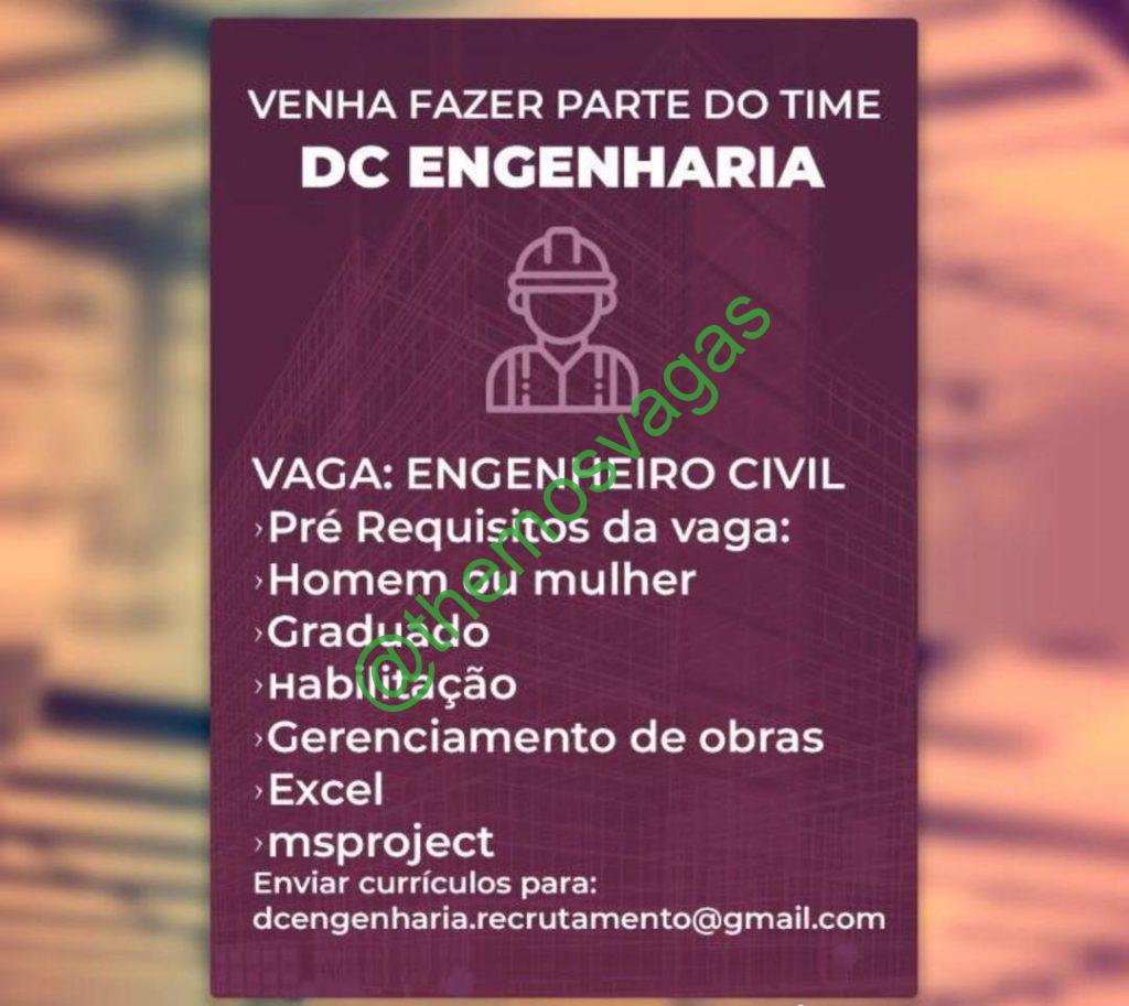 – Interessados(as) e que atendam ao perfil solicitado acima, devem enviar o currículo  para o e-mail dcengenharia.recrutamento@gmail.com contendo no título/assunto “Engenheiro Civil THE
