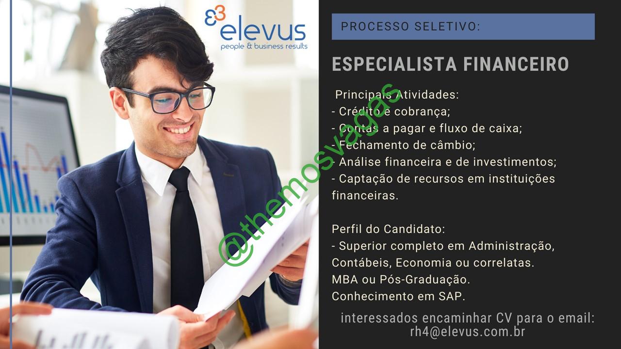 – Interessados(as) e que atendam ao perfil solicitado acima, devem enviar o currículo para o e-mail rh4@elevus.com.br , contendo no título/assunto “Especialista Financeiro – FOR