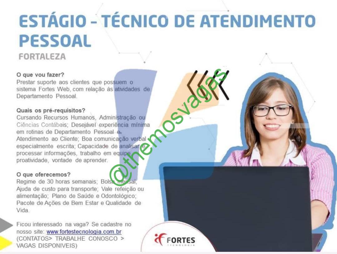 – Interessados(as) e que atendam ao perfil solicitado acima, devem enviar o currículo para o e-mail vagas@fortestecnologia.com.br, contendo no título/assunto “Estágio Atendimento Pessoal  – FOR“.