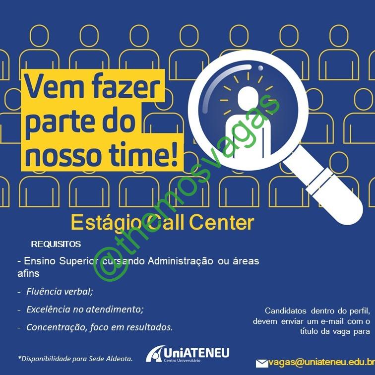 – Interessados(as) e que atendam ao perfil solicitado acima, devem enviar o currículo para o e-mail vagas@uniateneu.edu.br , colocando no título “Estágio Call Center”.