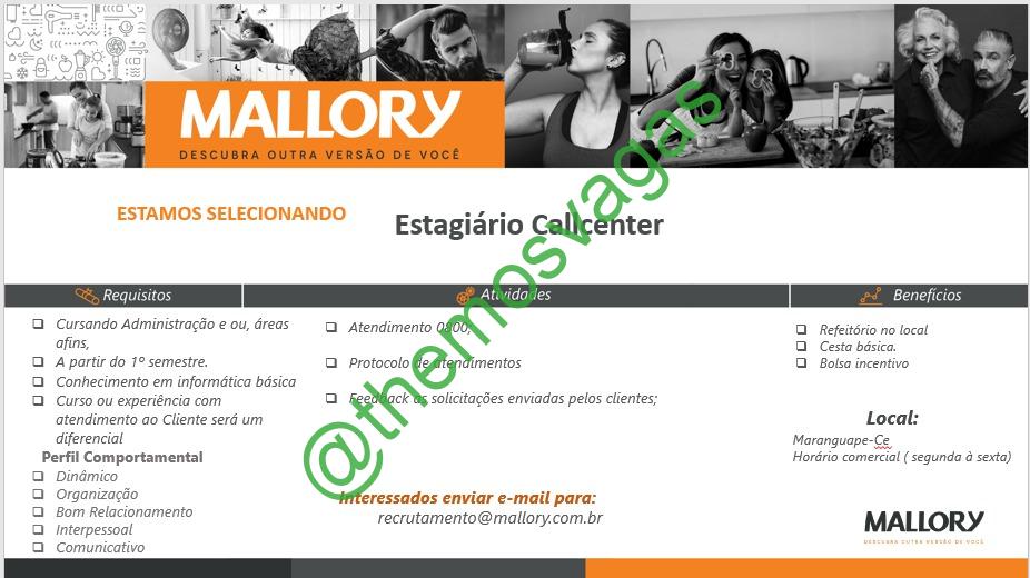 – Interessados(as) e que atendam ao perfil solicitado acima, devem enviar o currículo para o e-mail recrutamento@mallorry.com.br , colocando no título “Estágio Call center”.