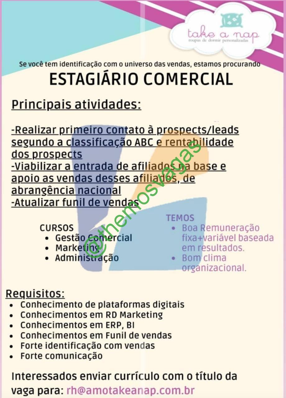 – Interessados(as) e que atendam ao perfil solicitado acima, devem enviar o currículo para o e-mail rh@amotakeanap.com.br, contendo no titulo/assunto “Estágio Comercial – FOR”.