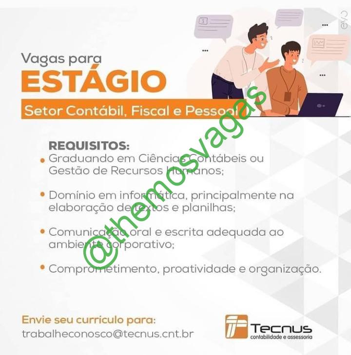 – Interessados(as) e que atendam ao perfil solicitado acima, devem  enviar o currículo para e-mail trabalheconosco@tecnus.cnt.br, contendo no titulo/assunto “Estágio Contábil – FOR