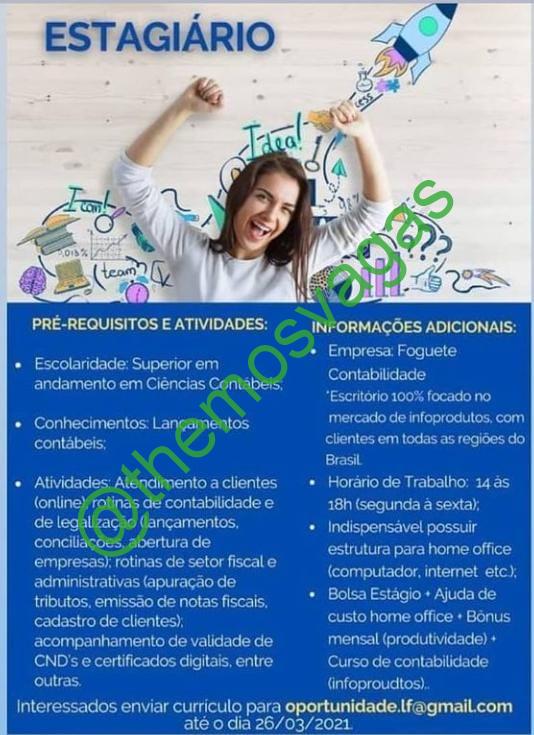 – Interessados(as) e que atendam ao perfil solicitado acima, devem enviar o currículo 26/03/2021 para o e-mail oportunidade.lf@gmai.com, contendo no título/assunto “Estágio Contábil – FOR”.
