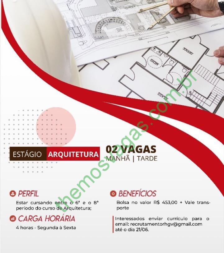 – Interessados(as) e que atendam aos requisitos devem enviar o perfil profissional até o dia 21/06/2019, colocando no título do e-mail “Estágio de Arquitetura”, para:  recrutamentorhgv@gmail.com