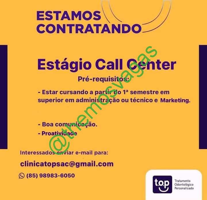 – Interessados(as) e que atendam ao perfil solicitado acima, devem enviar o currículo para o e-mail clinicatopsac@gmail.com, contendo no titulo/assunto “Estágio de Call Center – FOR”.