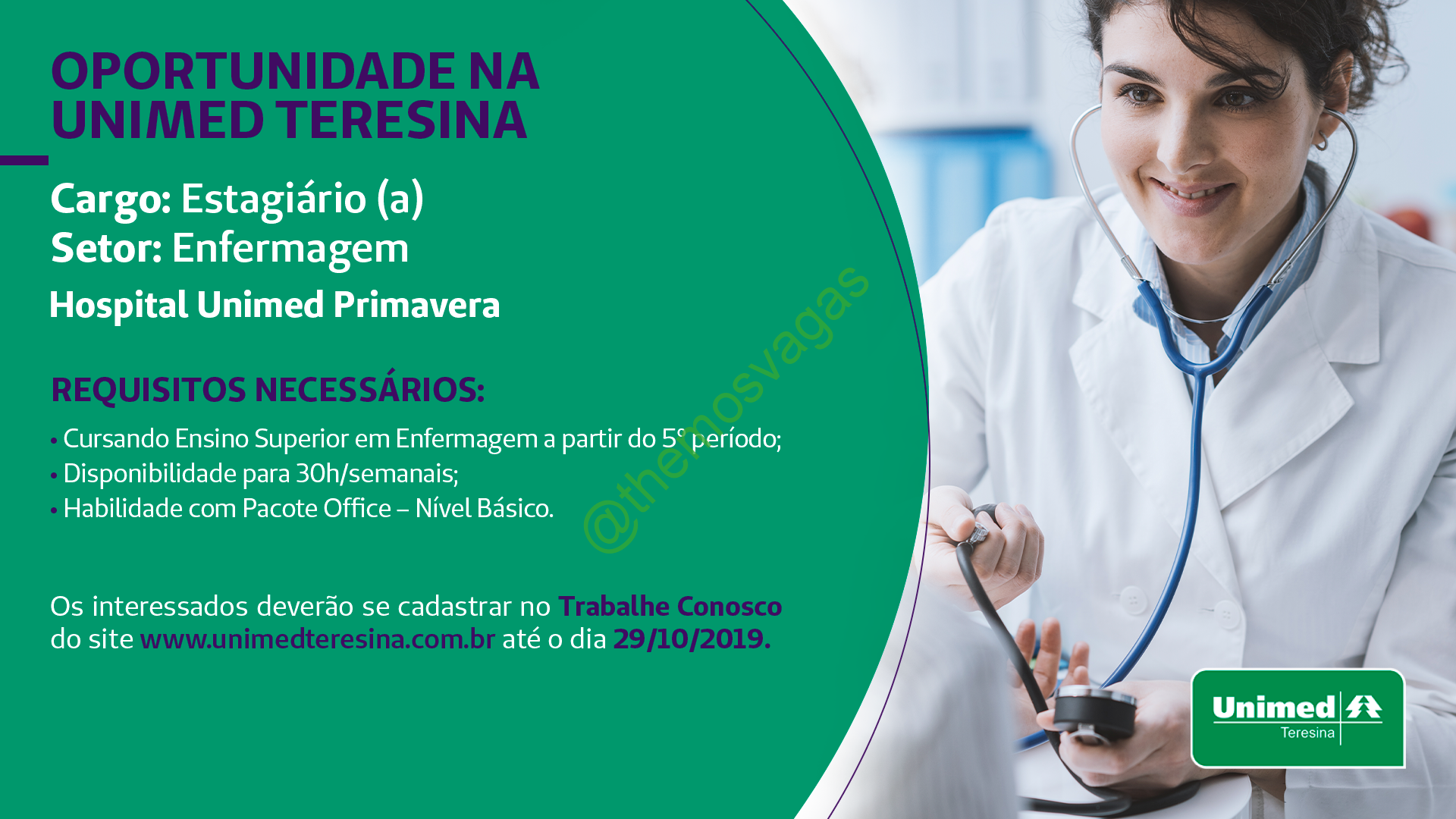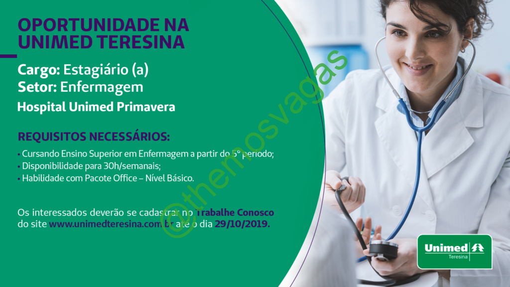 – Interessados(as) e que atendam ao perfil solicitado acima, devem realizar o cadastro até 29/10/2019 através do site da unimed.