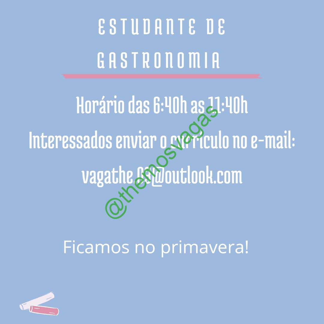 – Interessados(as) e que atendam ao perfil solicitado acima, devem enviar o currículo para o e-mail vagathe.03@outlook.com contendo no título/assunto “Estágio de Gastronomia“.