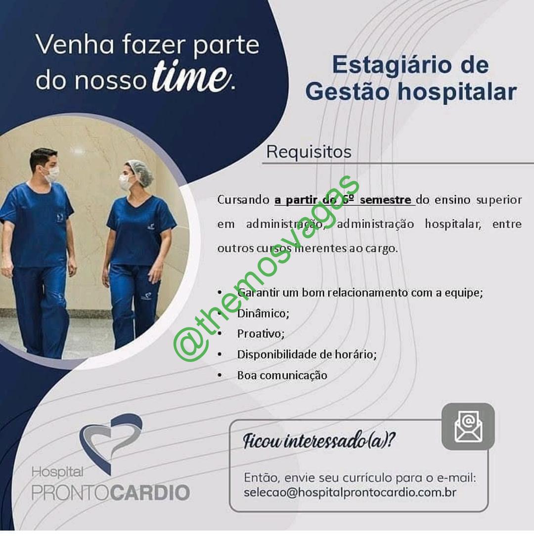 –  Interessados(as) e que atendam ao perfil solicitado acima, devem enviar o currículo para o e-mail selecao@hospitalprontocardio.com.br, contendo no titulo/assunto “Estágio de Gestão Hospitalar – FOR”.