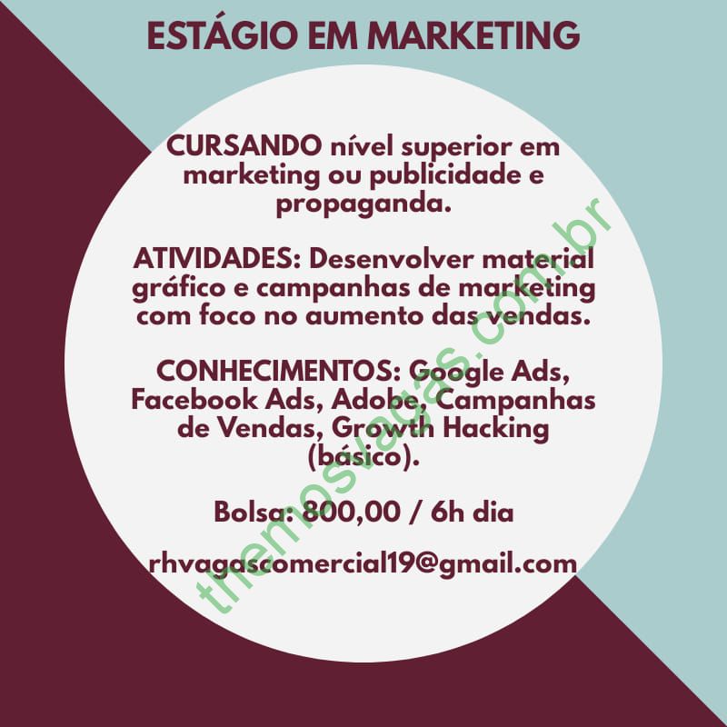 – Interessados(as) e que atendam ao perfil solicitado acima, devem enviar o currículo para o e-mail rhvagascomercial19@gmail.com, colocando no título “Estágio de Marketing”.
