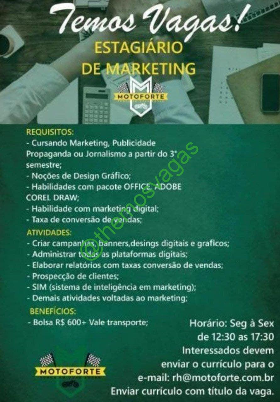 – Os interessados que se encontram no perfil acima descrito, devem enviar currículo para o e-mail rh@motoforte.com.br com o título/assunto “Estágio de Marketing – FOR