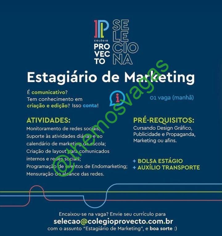 – Interessados(as) e que atendam ao perfil solicitado acima, devem enviar o currículo para o e- mail selecao@colegioprovecto.com.brcontendo no título/assunto “Estágio de Marketing FOR”.