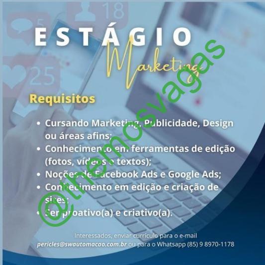 – Interessados(as) e que atendam ao perfil solicitado acima, devem enviar o currículo para o e-mail pericles@swoutomocao.com.br, contendo no título/assunto “Estágio de Marketing – FOR”.