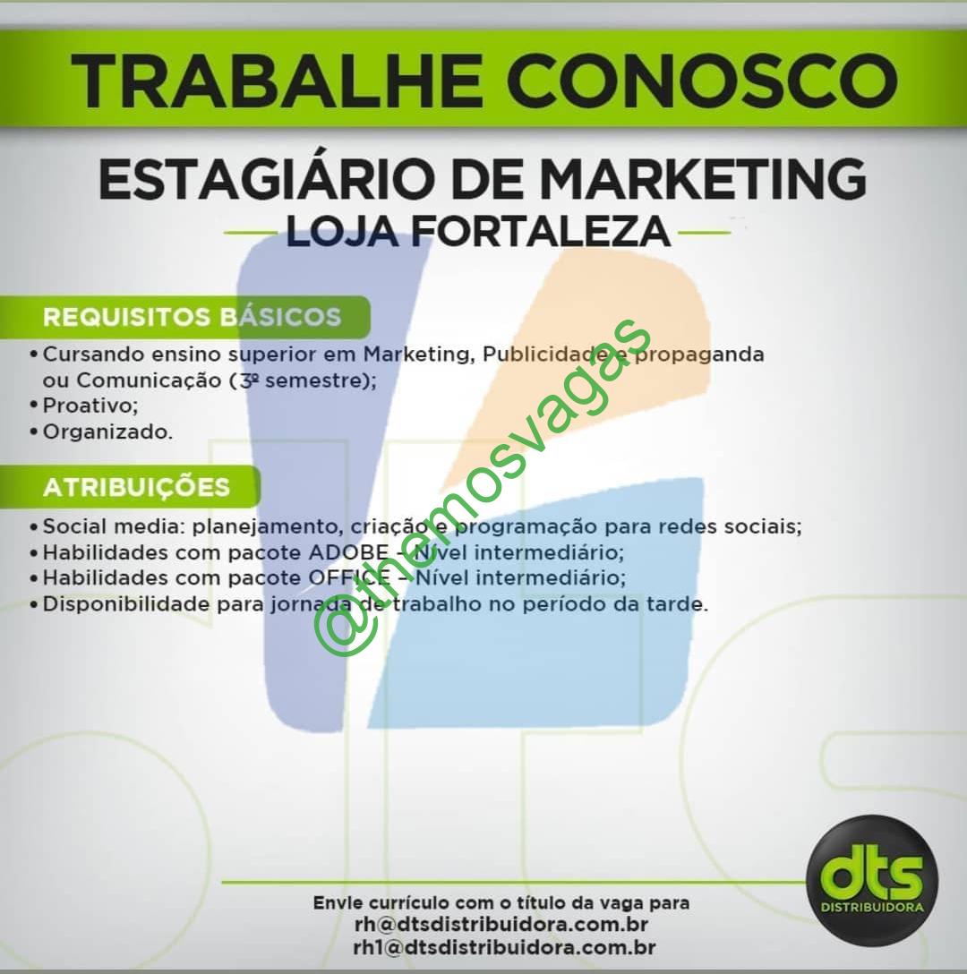 – Interessados(as) e que atendam ao perfil solicitado acima, devem enviar o currículo para o e-mail rh@dtsdistribuidora.com.br ou rh1@dtsdistribuidora.com.br contendo no título/assunto “Estágio de Marketing – FOR”.