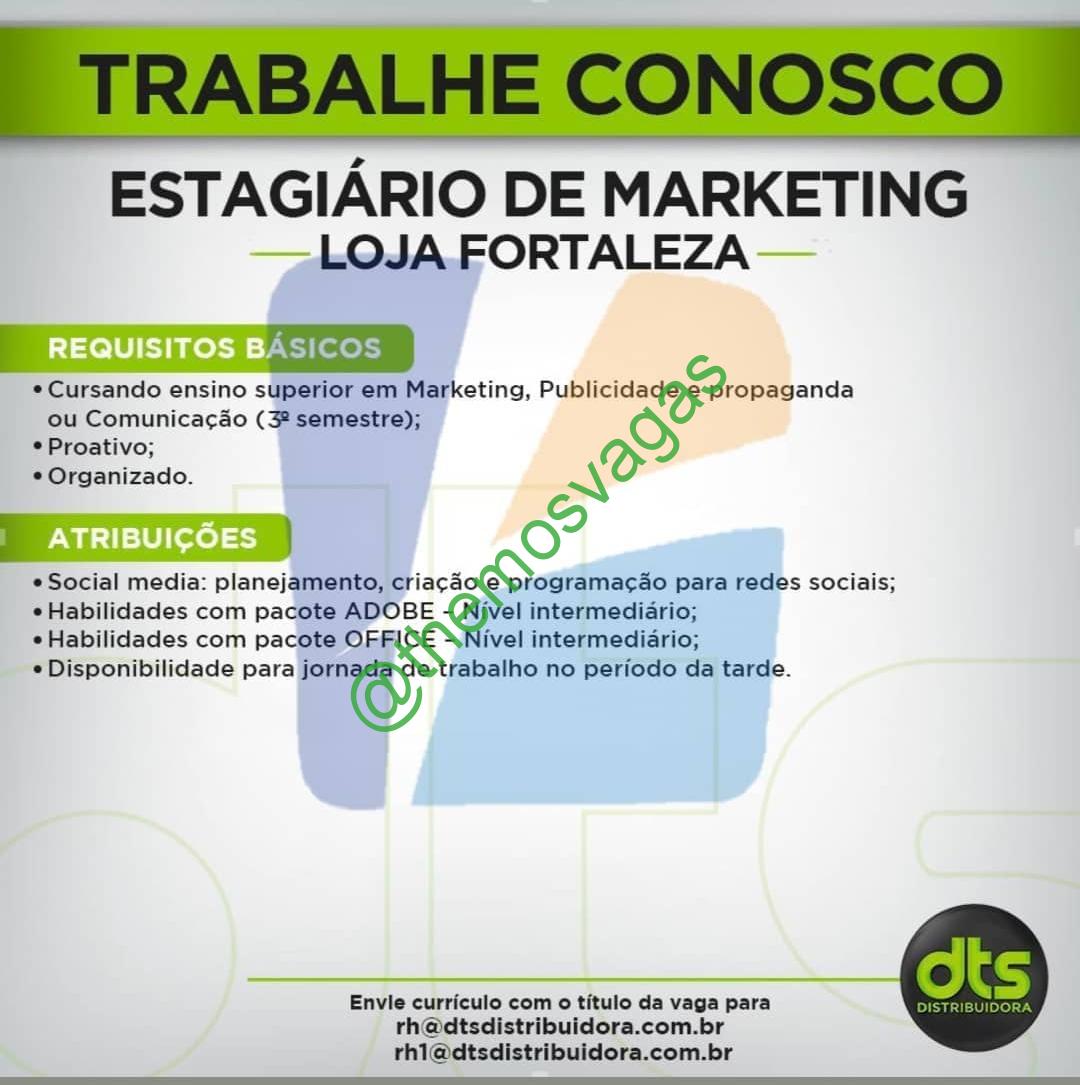 – Interessados(as) e que atendam ao perfil solicitado acima, devem enviar o currículo para o e-mail rh@dtsdistribuidora.com.br, contendo no titulo/assunto “Estágio de Marketing  FOR”.