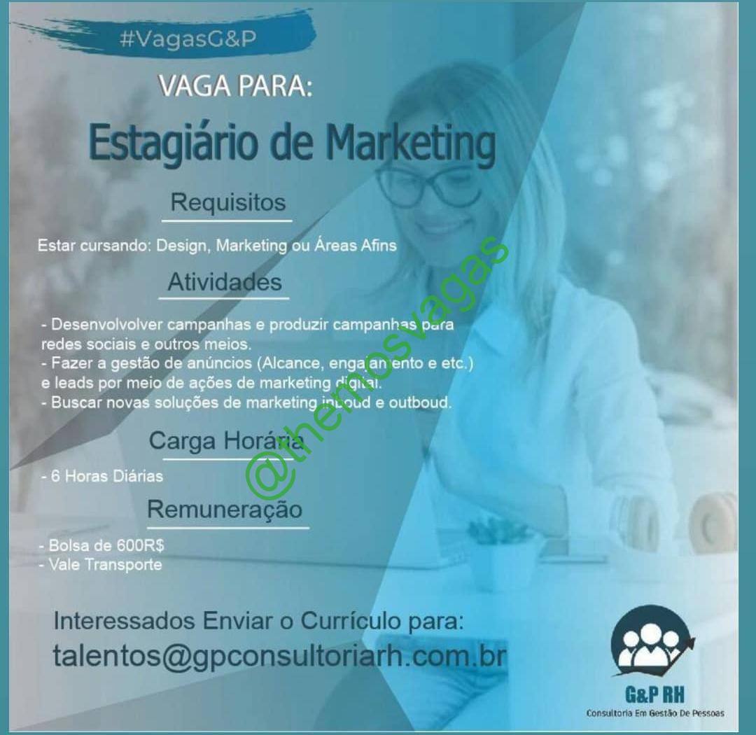 – Interessados(as) e que atendam ao perfil solicitado acima, devem enviar o currículo para o e-mail talentos@gpconsultoriarh.com.br, contendo no titulo/assunto “Estágio de Marketing – FOR”.